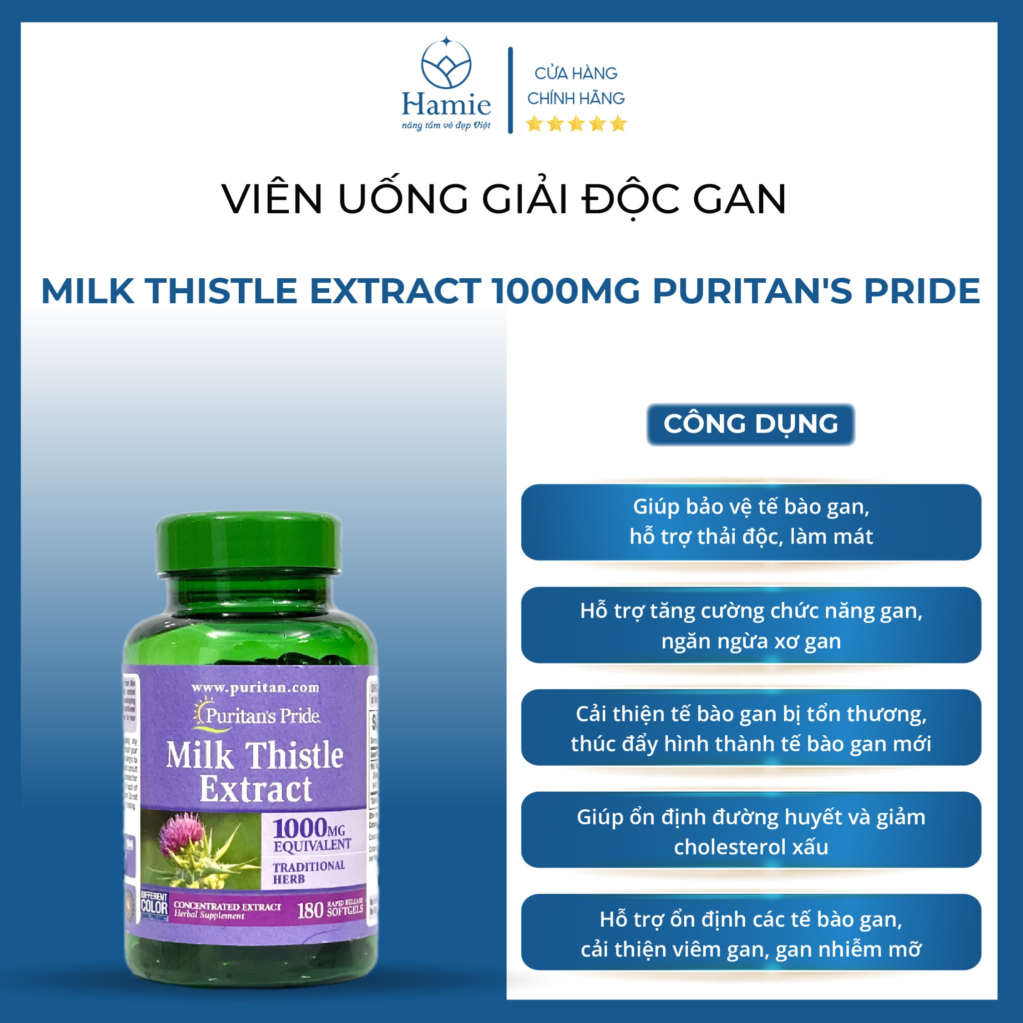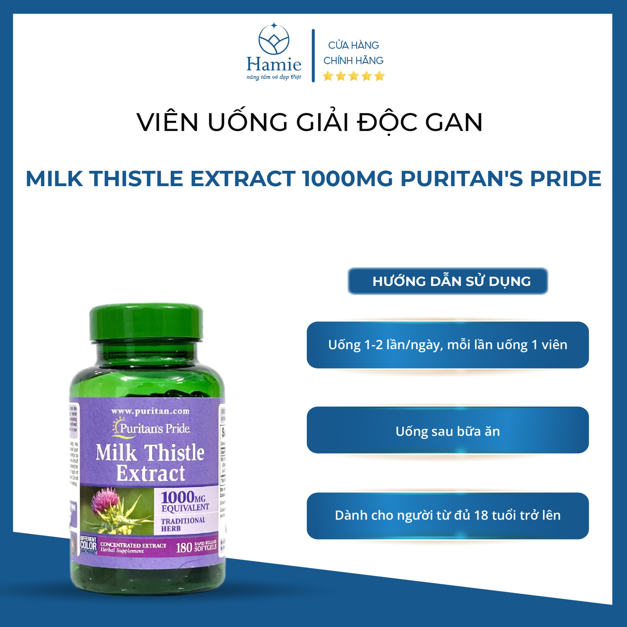 Viên Uống Giải Độc Gan Milk Thistle Extract 1000mg Puritan's Pride 180 Viên Mỹ
