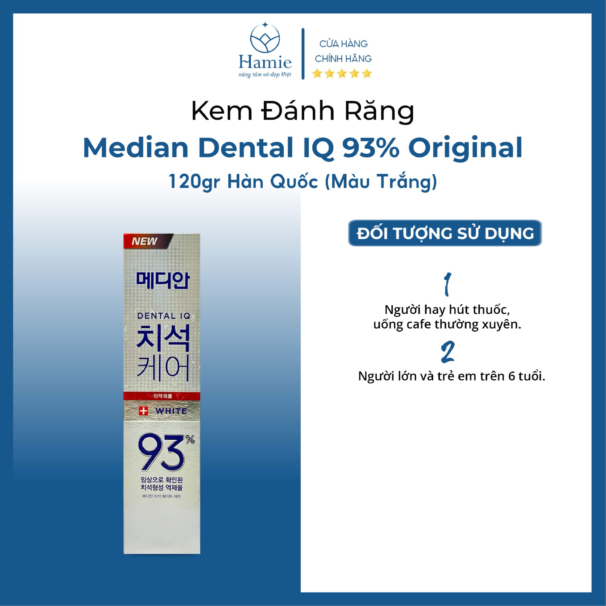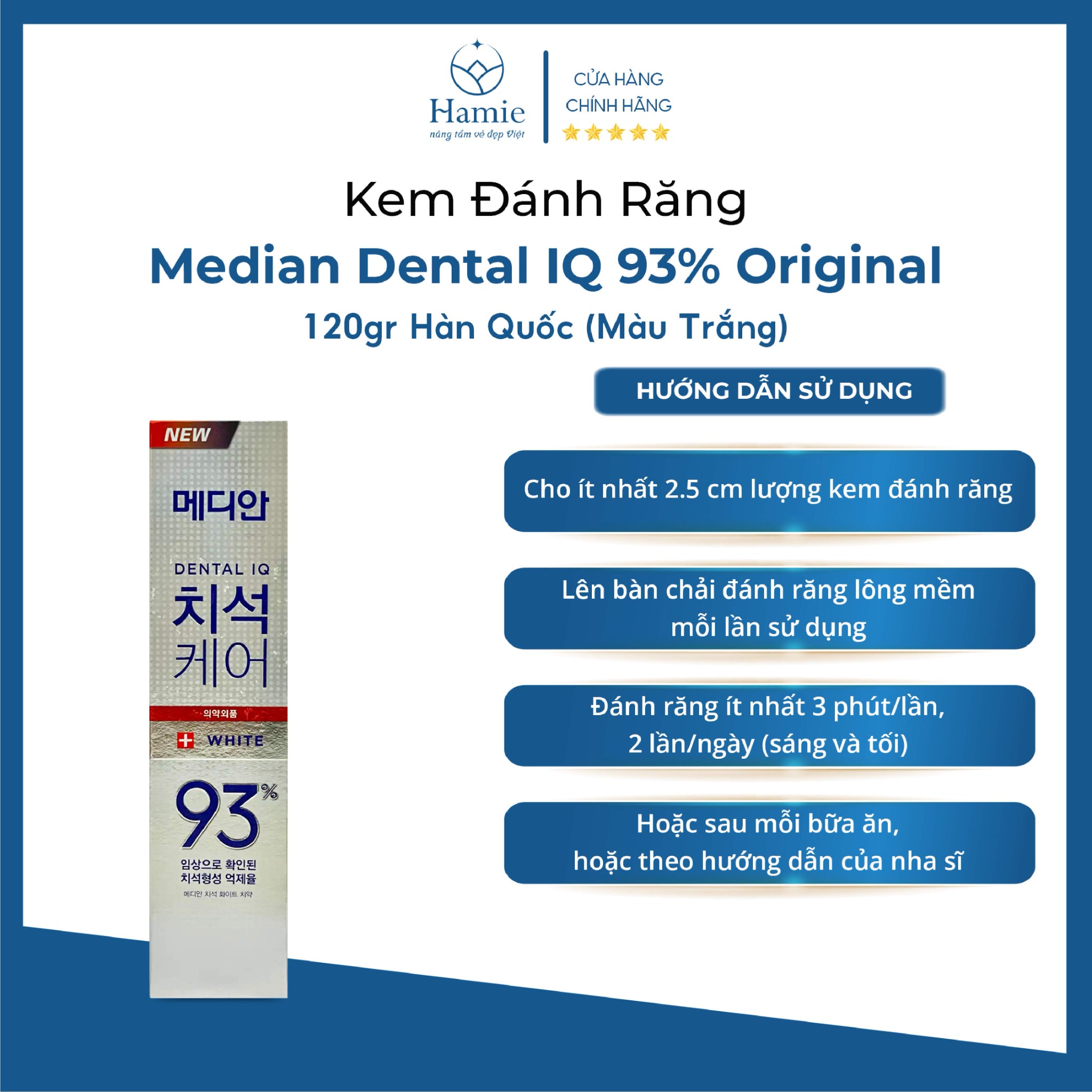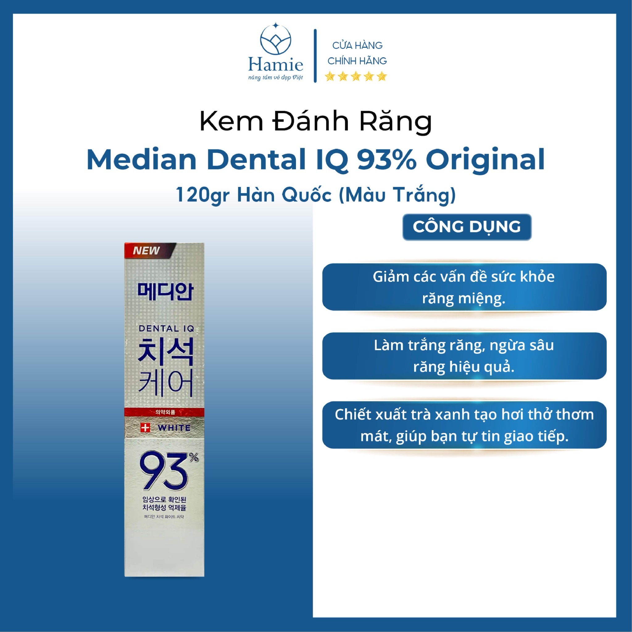 Tên sản phẩm: Kem Đánh Răng Median Dental IQ 93% Original 120gr Hàn Quốc (Màu Trắng)