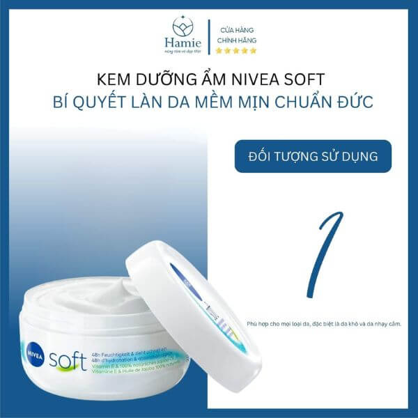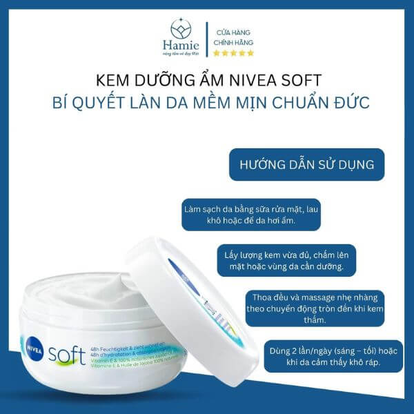 🌟 “Da mình rất khô, nhưng từ khi dùng Kem Dưỡng Ẩm Nivea Soft, tình trạng bong tróc đã hết hoàn toàn. Kem thấm nhanh, mùi dễ chịu nữa.” – Ngọc Hương, Hà Nội