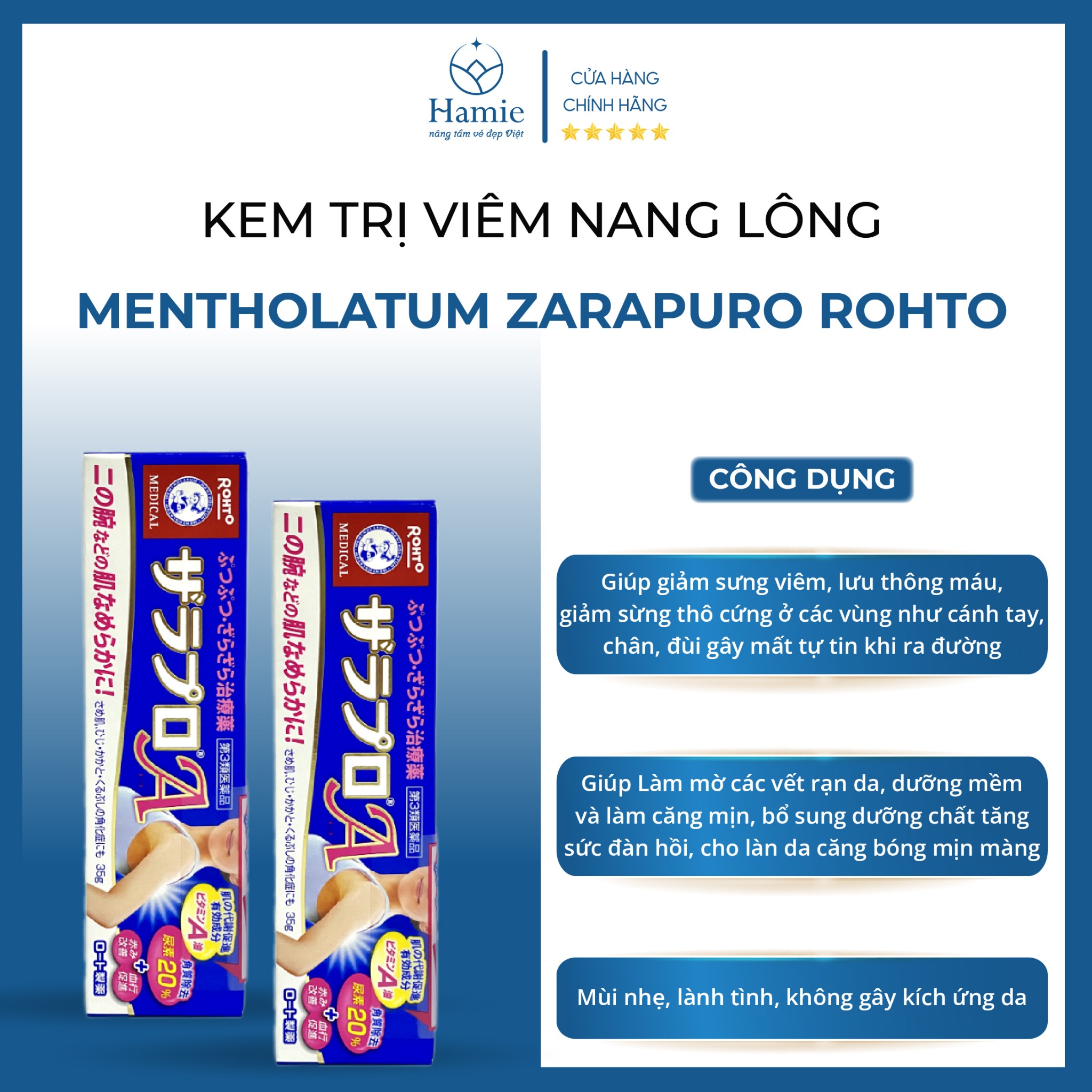 Tên sản phẩm: Kem Trị Viêm Nang Lông Mentholatum Zarapuro Rohto 35gr Nhật Bản