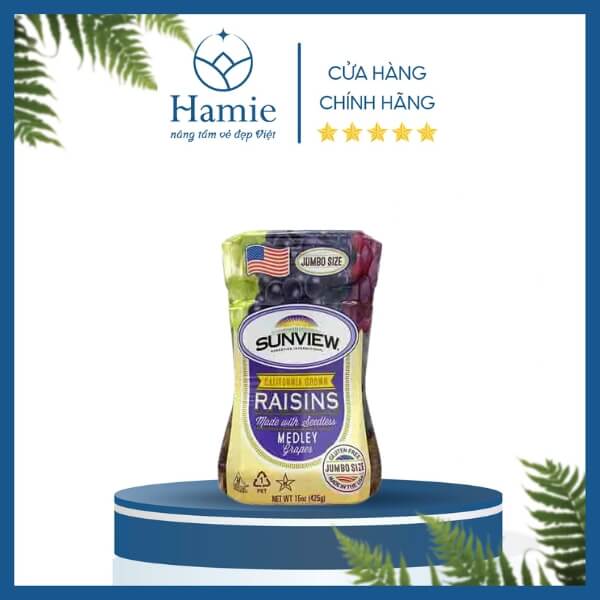 Nho Khô Raisins Sunview California Seedless Medly Grapes 425g Mỹ là dòng sản phẩm cao cấp, được sản xuất trực tiếp tại vùng đất California – nơi nổi tiếng toàn cầu về những vườn nho tươi ngon chất lượng bậc nhất. Được chọn lọc kỹ lưỡng từ những giống nho không hạt (Seedless Medly Grapes), sản phẩm mang đến hương vị ngọt ngào tự nhiên, vị chua nhẹ thanh mát và giá trị dinh dưỡng vượt trội.