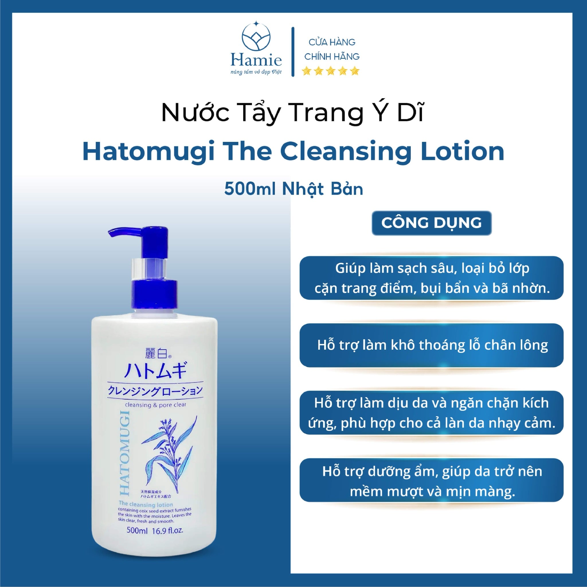 Tên sản phẩm: Nước Tẩy Trang Ý Dĩ Hatomugi The Cleansing Lotion 500ml Nhật Bản