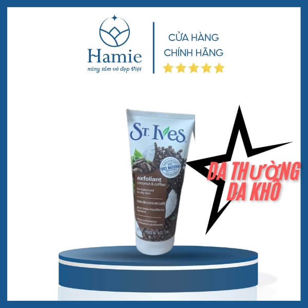 | St. Ives Exfoliant Coconut & Coffee( Dừa - Cà Phê) | Dừa + cà phê | Làm sạch da chết, kích thích tái tạo tế bào, cho da sáng mịn, săn chắc | Da thường đến da khô |