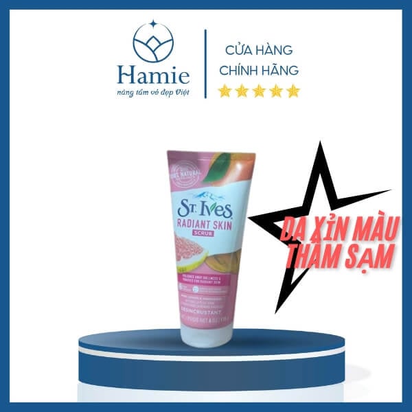 | St. Ives Radiant Skin Scrub( Chanh Hồng) | Chiết xuất chanh hồng + vitamin C | Làm sáng da, đều màu, tăng độ rạng rỡ | Da xỉn màu, thâm sạm |