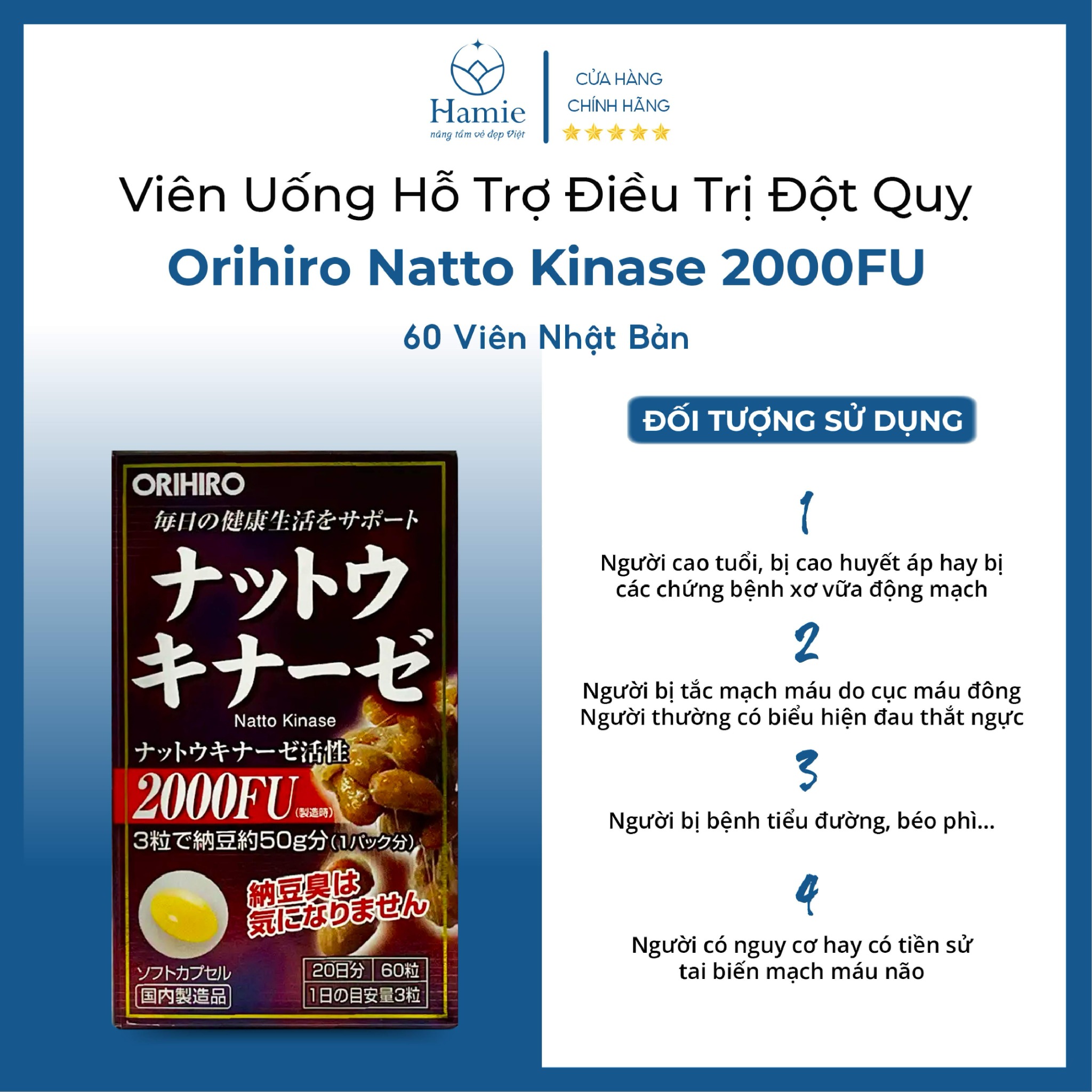 Tên sản phẩm: Hỗ Trợ Điều Trị Đột Quỵ Orihiro Natto Kinase 2000FU 60 Viên Nhật Bản
