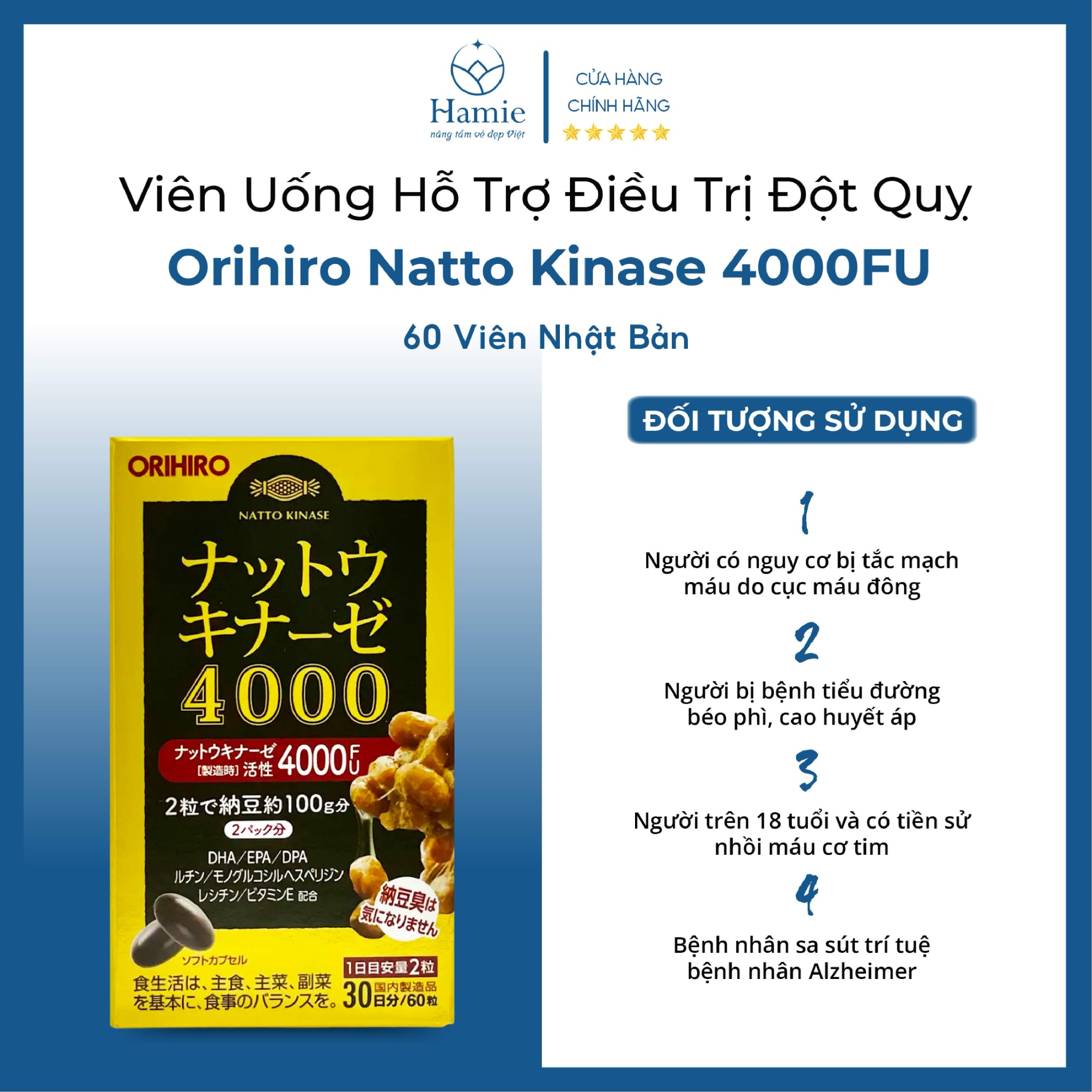 Tên sản phẩm: Viên Uống Hỗ Trợ Điều Trị Đột Quỵ Orihiro Natto Kinase 4000FU 60 Viên Nhật Bản