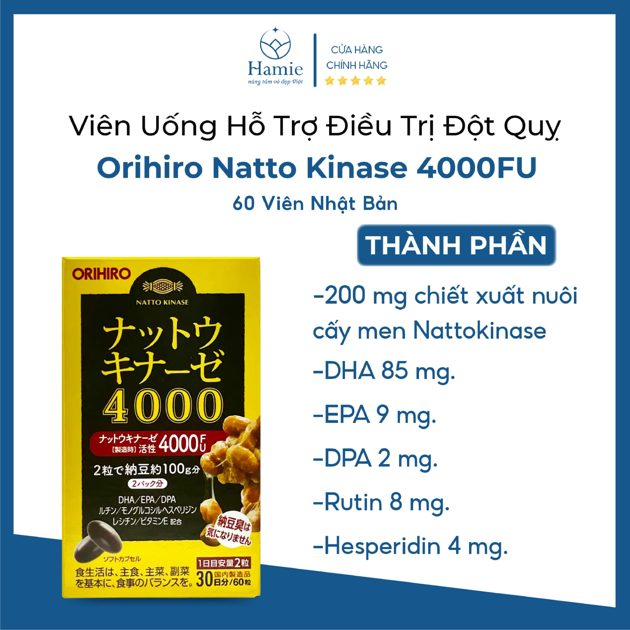 Viên Uống Orihiro Hỗ Trợ Điều Trị Đột Quỵ Natto Kinase 4000FU 60 Viên Nhật Bản Natto Kinase 4000FU bao gồm các thành phần chính như:
